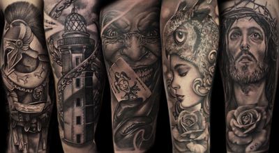 My name is Robert Silva. Was raised in Hollister Ca, but born in Mexico. I have over 10 years experience tattooing. Mainly I specialize in black and gray realism like portraits, skulls, religious pieces and other stuff, But could do a little bit of everything.